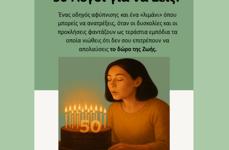 Με αφορμή τα φετινά μου 50α γενέθλια, θέλω να μοιραστώ μαζί σου 50 λόγους ζωής, μαθήματα, ευλογίες και αφορμές για να τιμήσουμε το δώρο αυτό που λέγεται Ζωή! Φέτος περισσότερο από ποτέ, όχι μόνο επειδή κλείνω μισό αιώνα ζωής αλλά επειδή λόγω της απώλειας του πατέρα μου μόλις πριν από ένα μήνα, έχω συνειδητοποιήσει ότι χρειάζεται να ζούμε πλήρως ΣΥΝΕΙΔΗΤΑ! Να αφουγκραζόμαστε τους παλμούς της καρδιάς μας, να αγαπάμε αληθινά, να αναπνέουμε με σεβασμό προς το σώμα και την υγεία μας, να συμπεριφερόμαστε οικολογικά και να κάνουμε σκέψεις που μας κάνουν καλύτερους ανθρώπους και όντα σε συνεχή εξέλιξη….