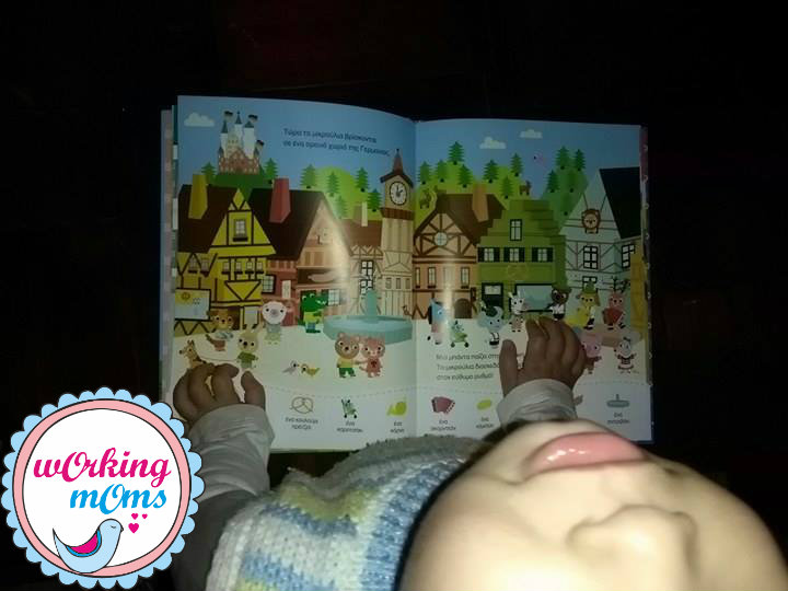 Στο κάτω μέρος κάθε σελίδας απεικονίζονται εικόνες τις οποίες ζητάς απο το μικρούλη σου να τις βρει μέσα στην ιστορία.